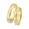 14 kt. guldringe i 4,5 mm med blank overflade. Dame ringen er prydet med i alt 0,12 ct. brillanter.