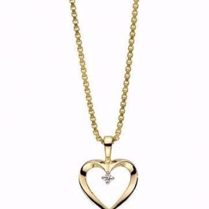 Guld vedhæng 8kt. hjerte med zirkonia. incl. 45cm. forgyldt sølv kæde